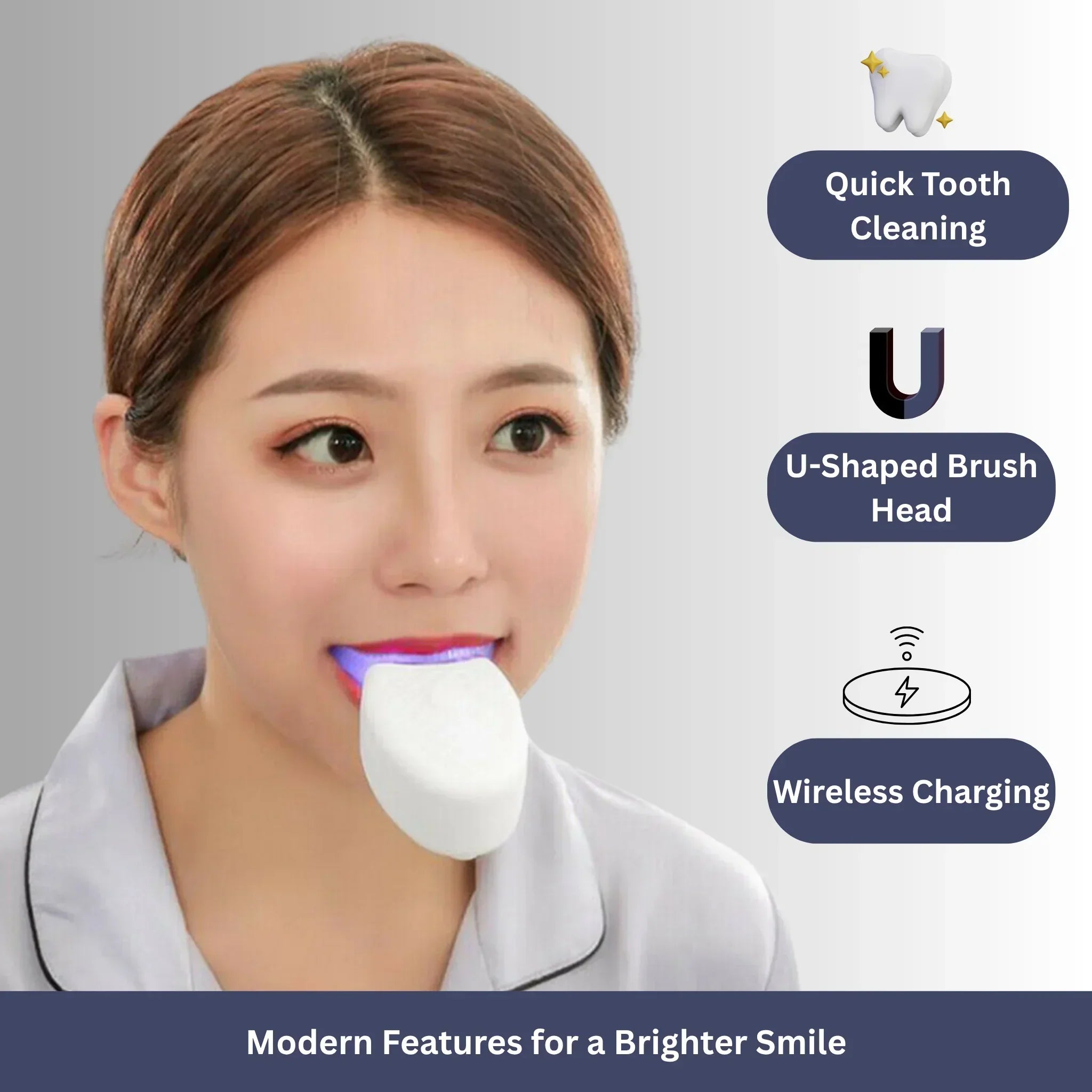 The toothbrush offers 3 cleaning modes: gentle cleaning, strong cleaning, and a gum-friendly massage mode. Additionally, the cold light whitening feature gradually makes your teeth visibly whiter over time.