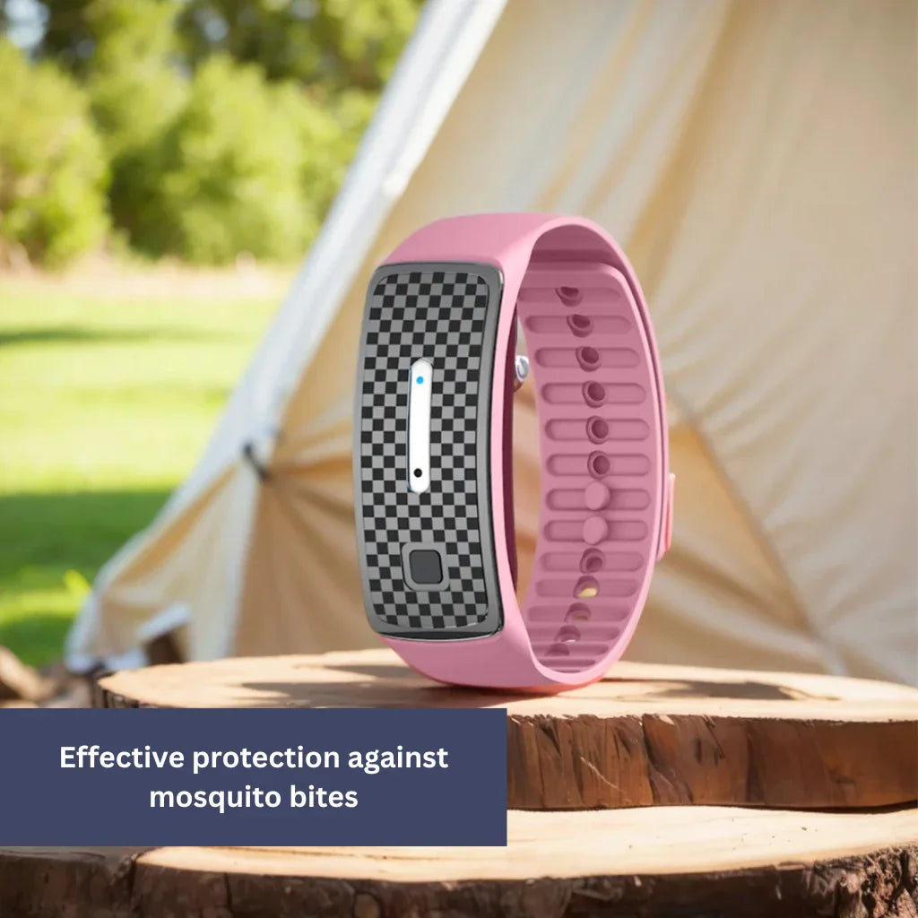 This bracelet uses advanced ultrasonic technology to repel mosquitoes by mimicking the sounds of male mosquitoes and dragonflies, effectively keeping biting females away — without any chemicals.