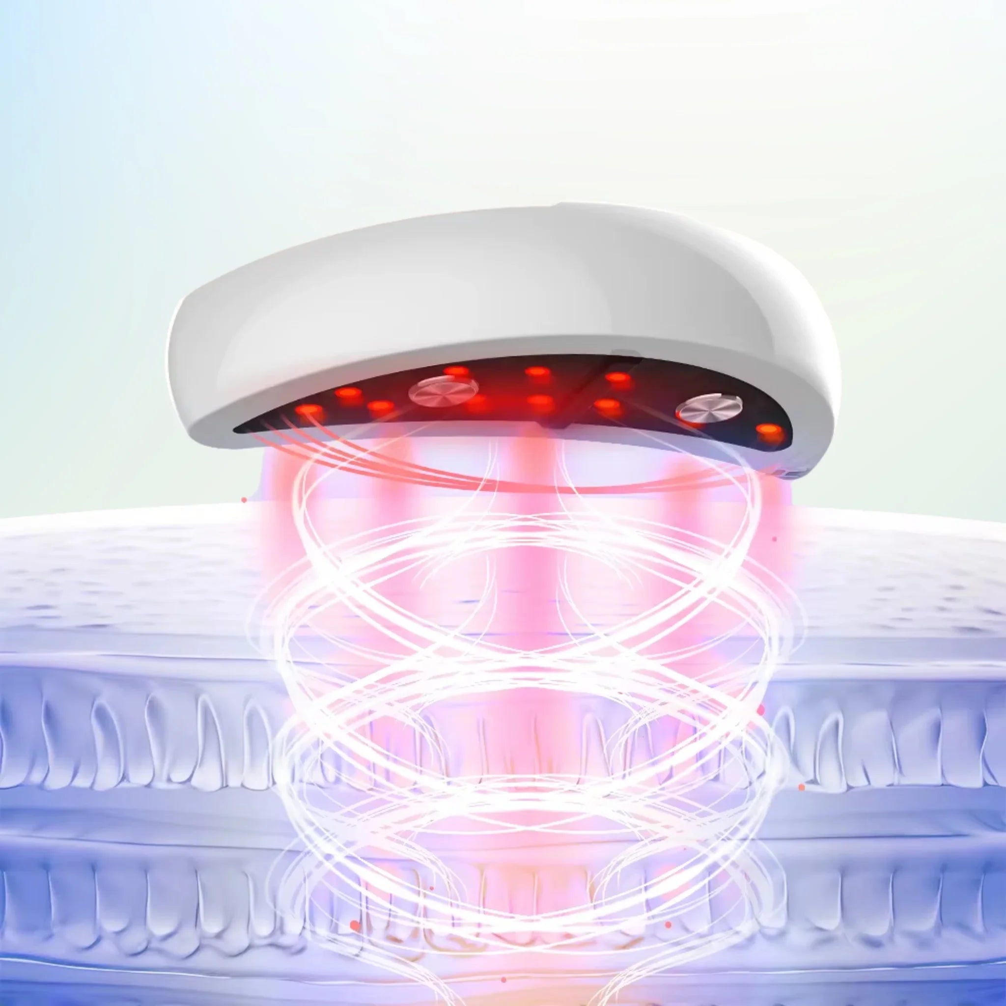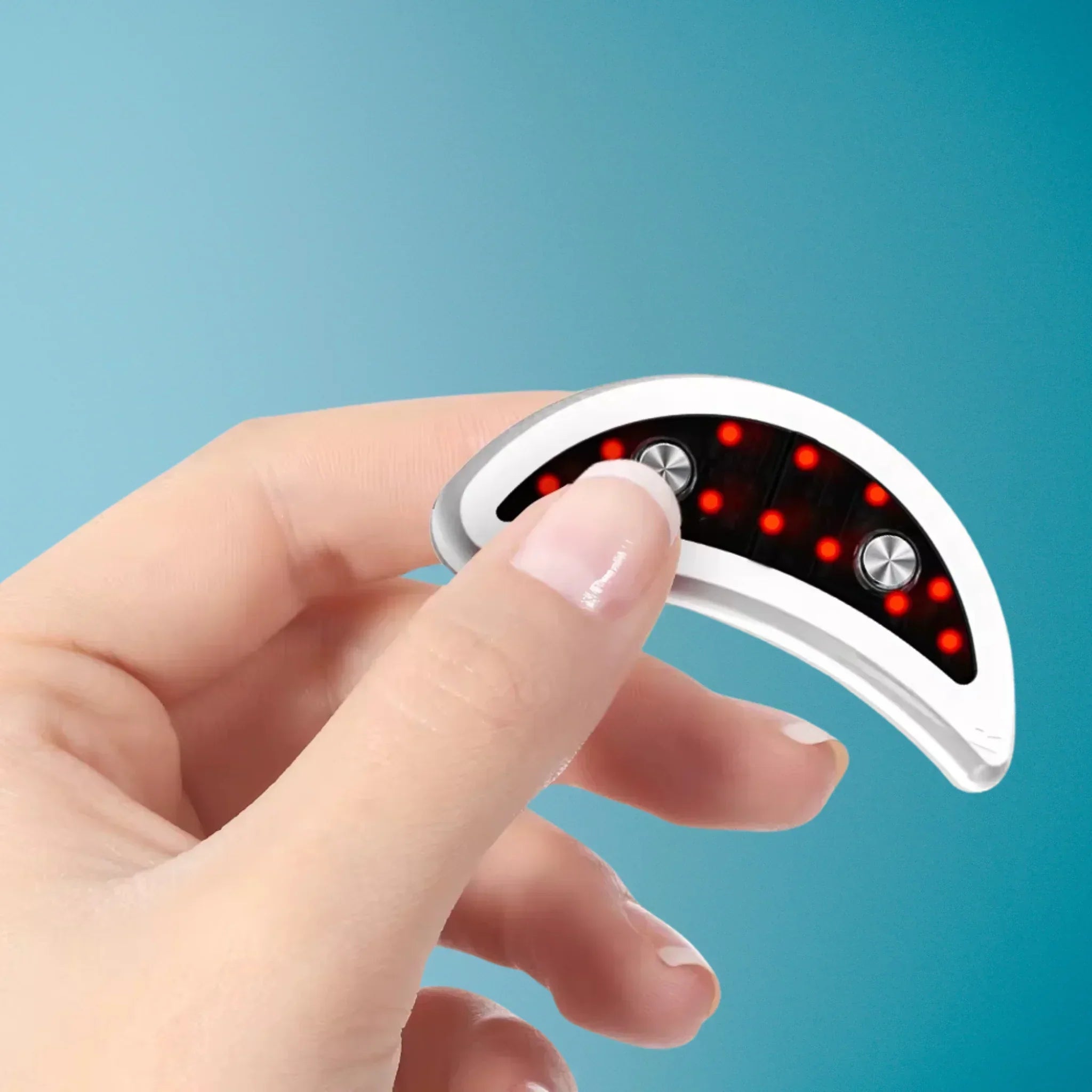 With EMS pulses and soothing red light, it promotes blood circulation , smoothes fine lines and effectively reduces dark circles and bags under the eyes.