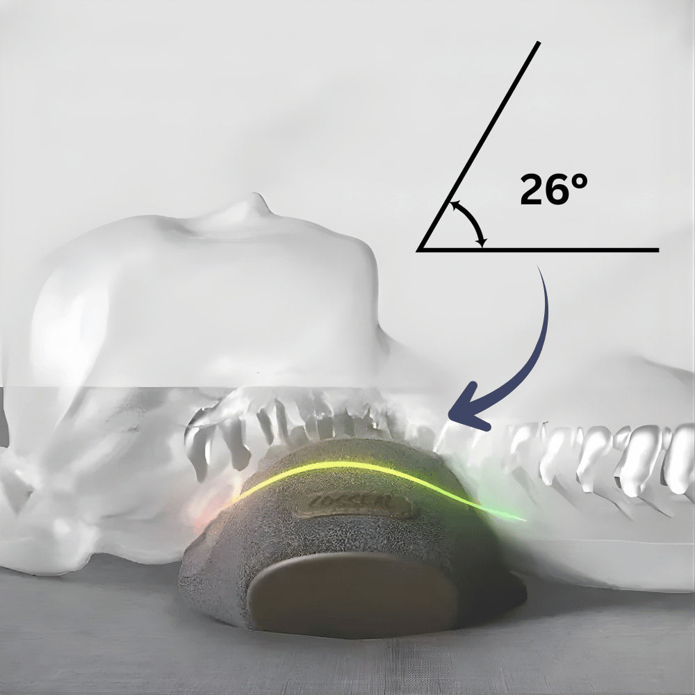 The precisely engineered 26-degree curvature adapts perfectly to the natural spinal alignment, providing reliable support for both the neck and lower back.